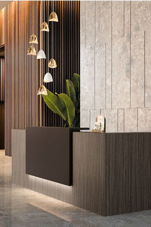Conception de mobilier d'accueil, comptoirs, et bornes publiques.